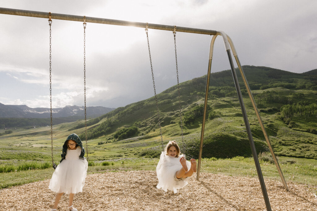To keep things stress-free, have someone they trust—like a parent, grandparent, or older sibling—ready to gently guide them down the aisle if needed. Even just having a group of flower children walking down together, as Carter and Faith had in their mountain wedding, can help! A sea of unfamiliar faces can be intimidating, and having backup ensures that your flower girls and ring bearers feel safe, supported, and confident.