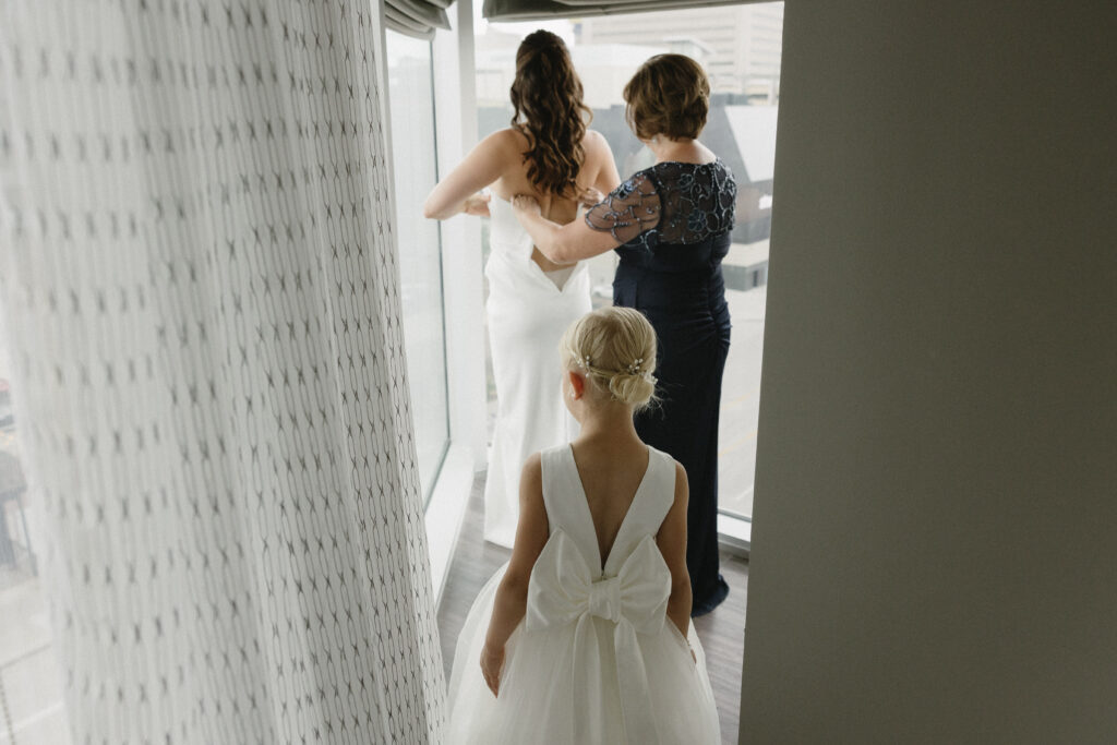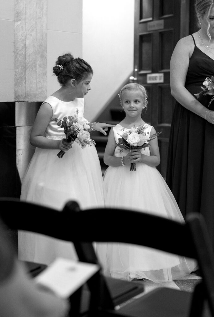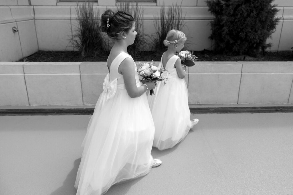 Stacie included her flower girls in every moment of the morning, even having them help her put on her shoes! You can read all about her Durham Museum wedding in this post!